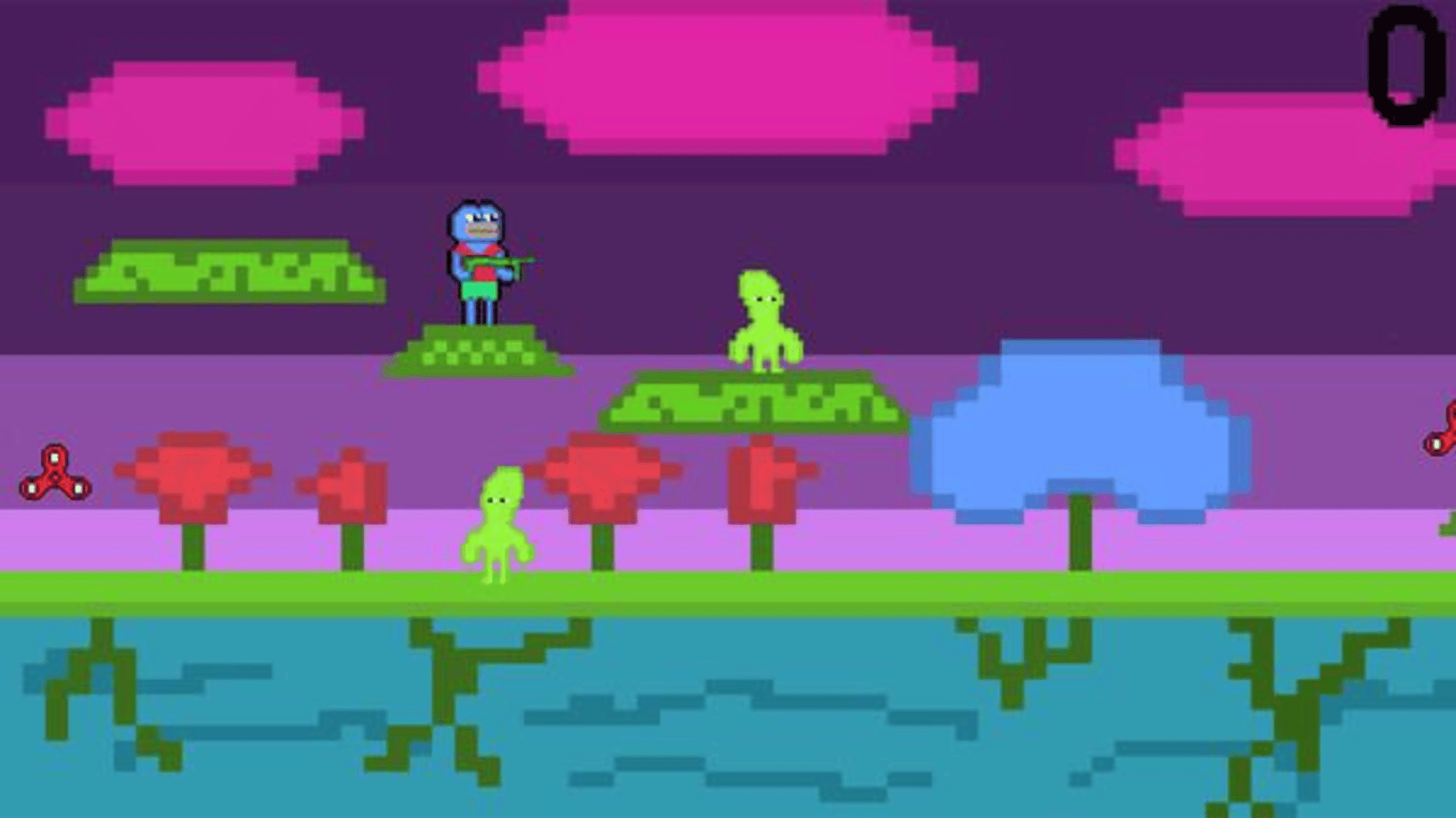 You play for Pipi, and you need to destroy enemy aliens and collect bitcoins with spinners.