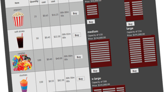 MEGAPLEX MANAGER is a free simulation and strategy browser game where you manage the economy of a virtual cinema (movie theater). The gameplay is a mix between a fantasy boxoffice and cinema tycoon. You get to schedule movies, purchase screens or refill snacks to meet equilibrium in supply and demand. Will you become the next multiplex mogul?