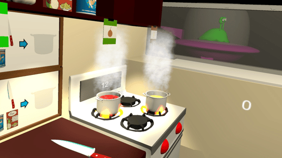 Lost in Spice is a cooking game for Oculus Rift in which you play as an abducted human forced to cook Earth food for aliens at the Intergalactic House of Planets. Now you have to dice up weird ingredients, cook them, and submit them in the time limit to get a good score. And if you don't, you'll be vaporized!