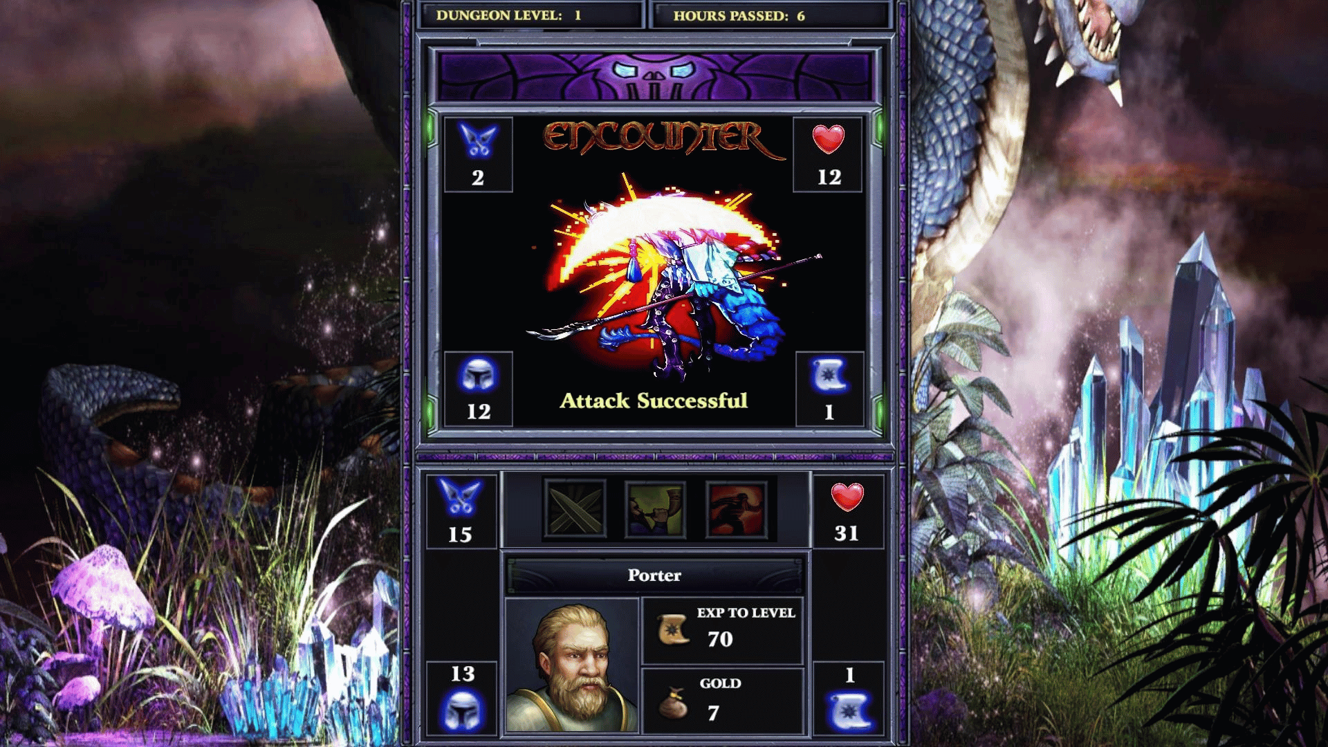 Destination Dungeon is a new casual style of dungeon crawling. Instead of roaming around a huge dungeon looking for opportunity, the opportunities come to you. Random events take place including traps, locked doors, enemy encounters, merchants, and more.