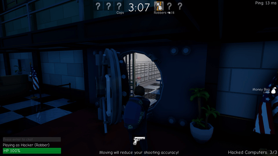 Perfect Heist is a round-based online game, where the robber team tries to execute a bank robbery without getting noticed, and the cop team tries to prevent it. Robbers hide in plain sight and try to slowly infiltrate the bank while the Cops try to figure out who is a normal customer, and who is a robber!