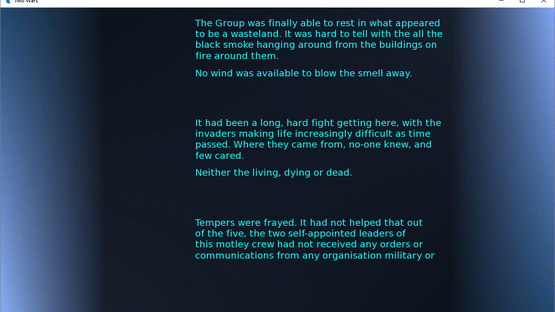 A band of survivors must cope with both an alien invasion, lack of resources and themselves