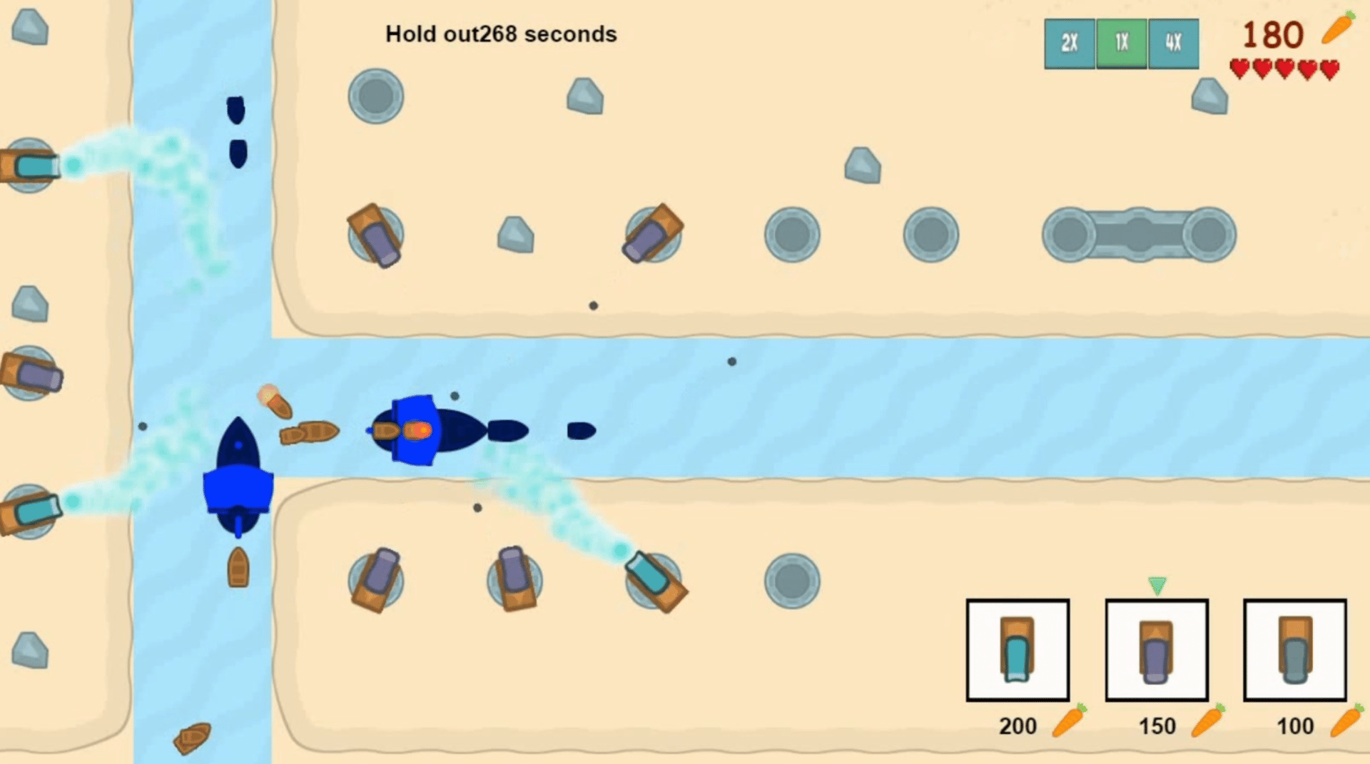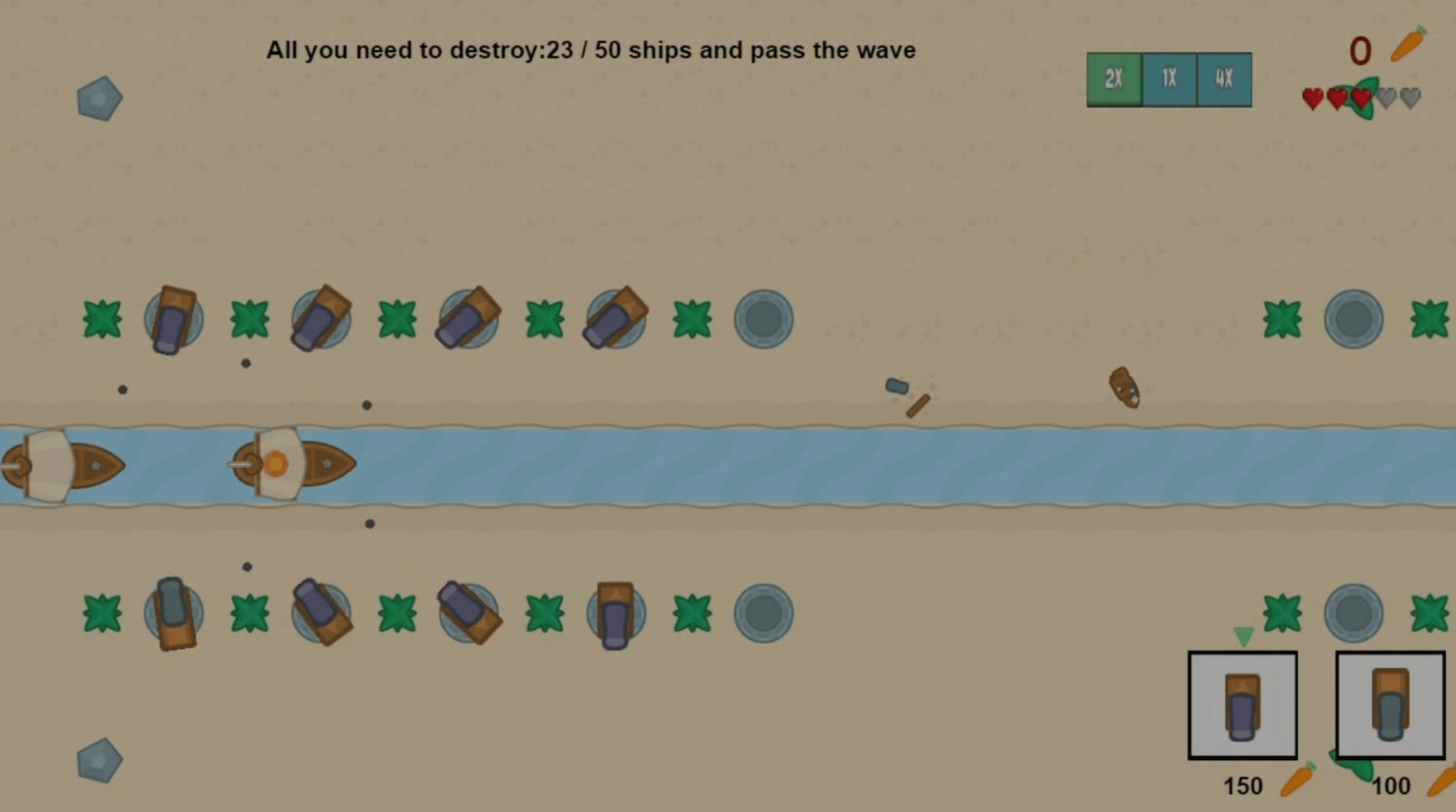 In the game "In battle" your country will protect the way from enemy ships. At your disposal are several types of cannons, for which a number of forts are assigned. At the beginning of the battle you have a small stock of ammunition and can not equip all forts on the map with cannon. Therefore, place the guns in the most suitable forts, so as not to miss any enemy.