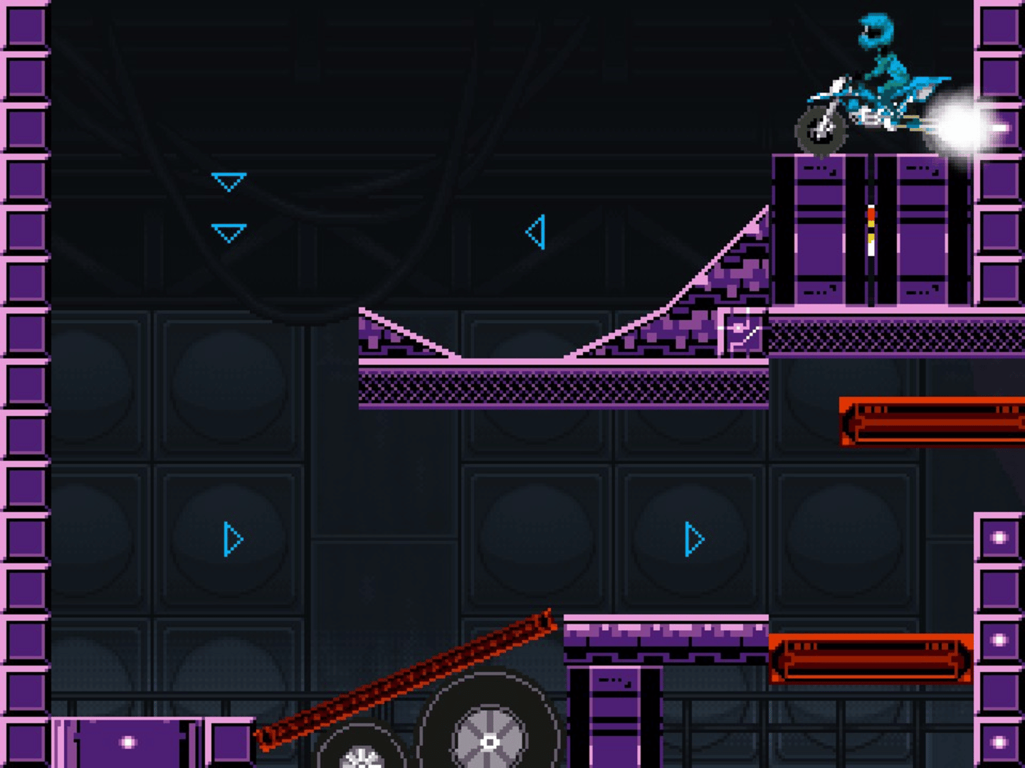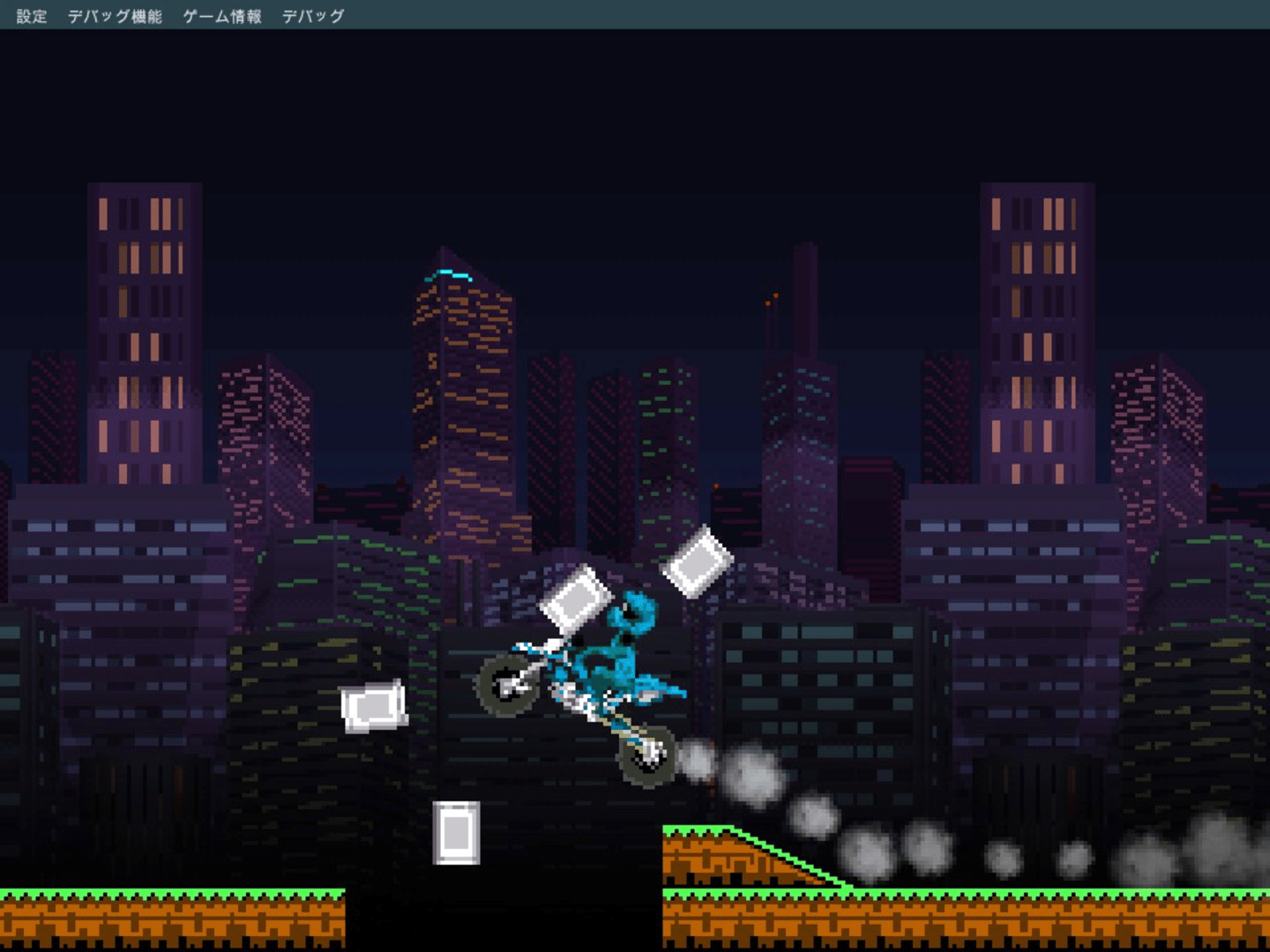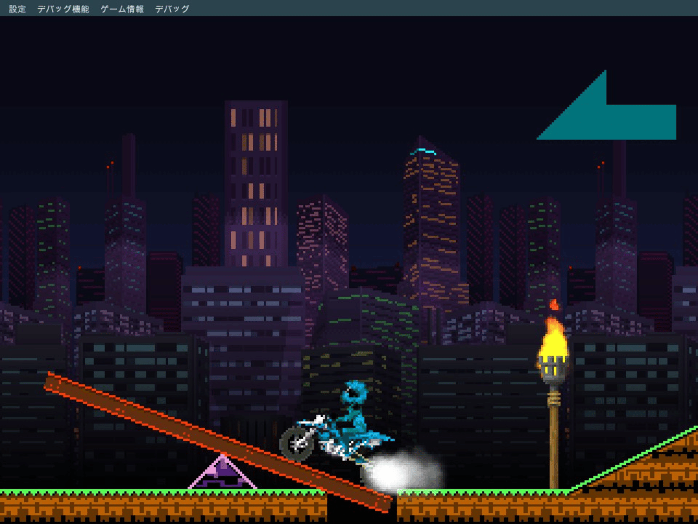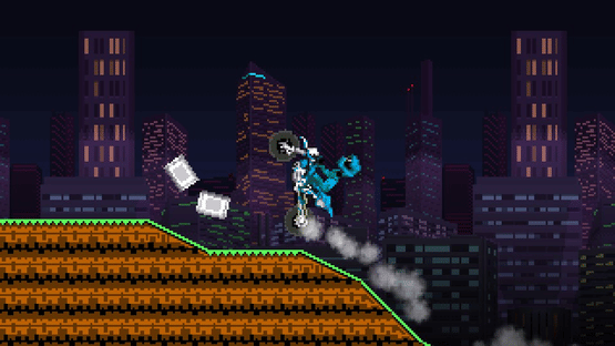 Check out this simple motorcycle racing minigame created with Pixel Game Maker MV! Tame your wild and jacked-up bike to fly through the various stages and rub your awesome clear times in your opponents’ faces!