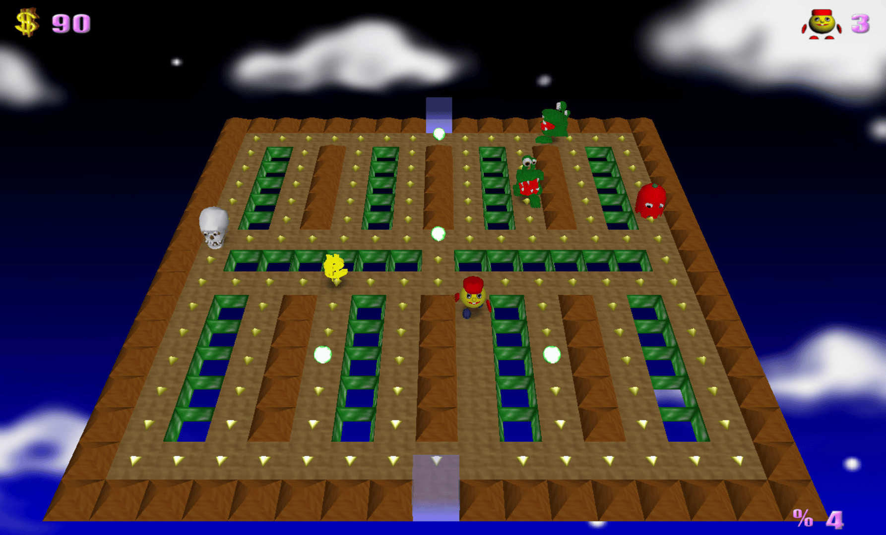Discover the classic retro game all over again! In the new 3D mazes, you must feel your dexterity and sharpness, avoid or hunt back the monsters, eat all dots to win!