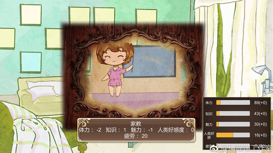 This is a antique style game with TCG & LVG ,you need to carry out the character training of Katie (heroine) in 90 days and finish all the plots. There are 21 endings. There are 5 NPCs that can be interacted, including you(player).