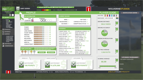 Prepare for your journey to becoming one of golf's all-time greats in this career based golf game. Choose one of six tours to start on and develop your golfer as you battle the rest of the tour for the tournament cup chases or just to stay alive on the tour without going broke! Each of the six tours offers their own unique systems and challenges as you work your way from the junior circuit to the pro tour and eventually ride off into the sunset on the senior tour. Fill up your trophy case and become a golfing legend with Draft Day Sports: Pro Golf.