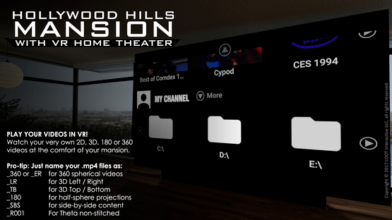 The Hollywood Hills Mansion is the perfect space to unwind and escape. Enjoy breathtaking views of the Los Angeles skyline and watch content from Facade TV (or your own side-loaded content) on our Entertainment On Demand system. Can be experienced with or without a VR headset!
