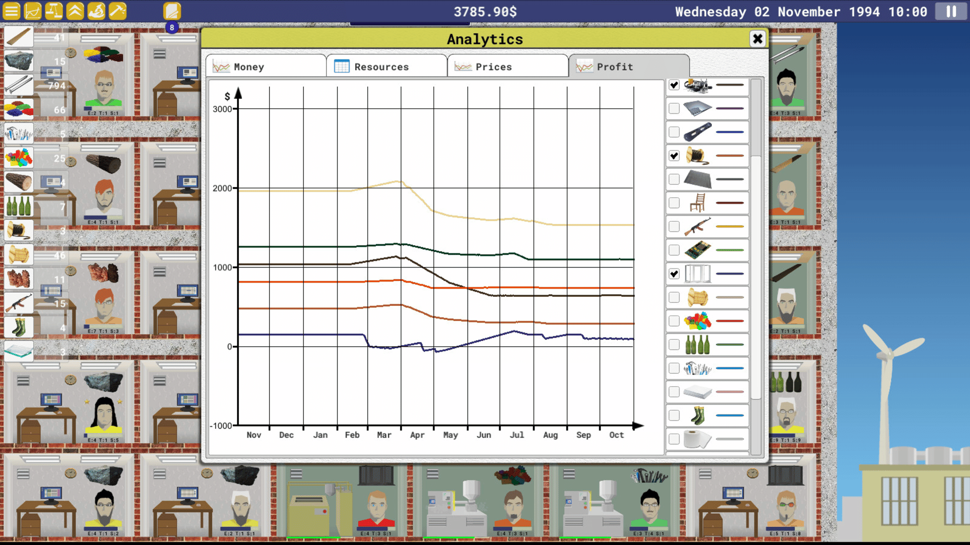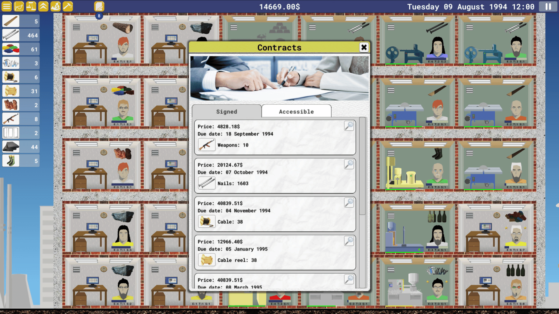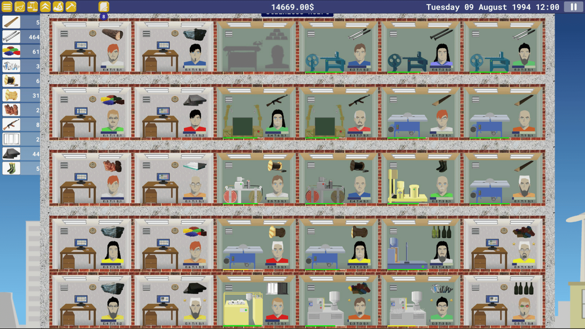Factory Manager is a game about development of your own manufacturing business from scratch. You are going to take loans, hire stuff, buy machines and materials, produce goods according to the recipes and be prepared for the various risks inherent in any business.