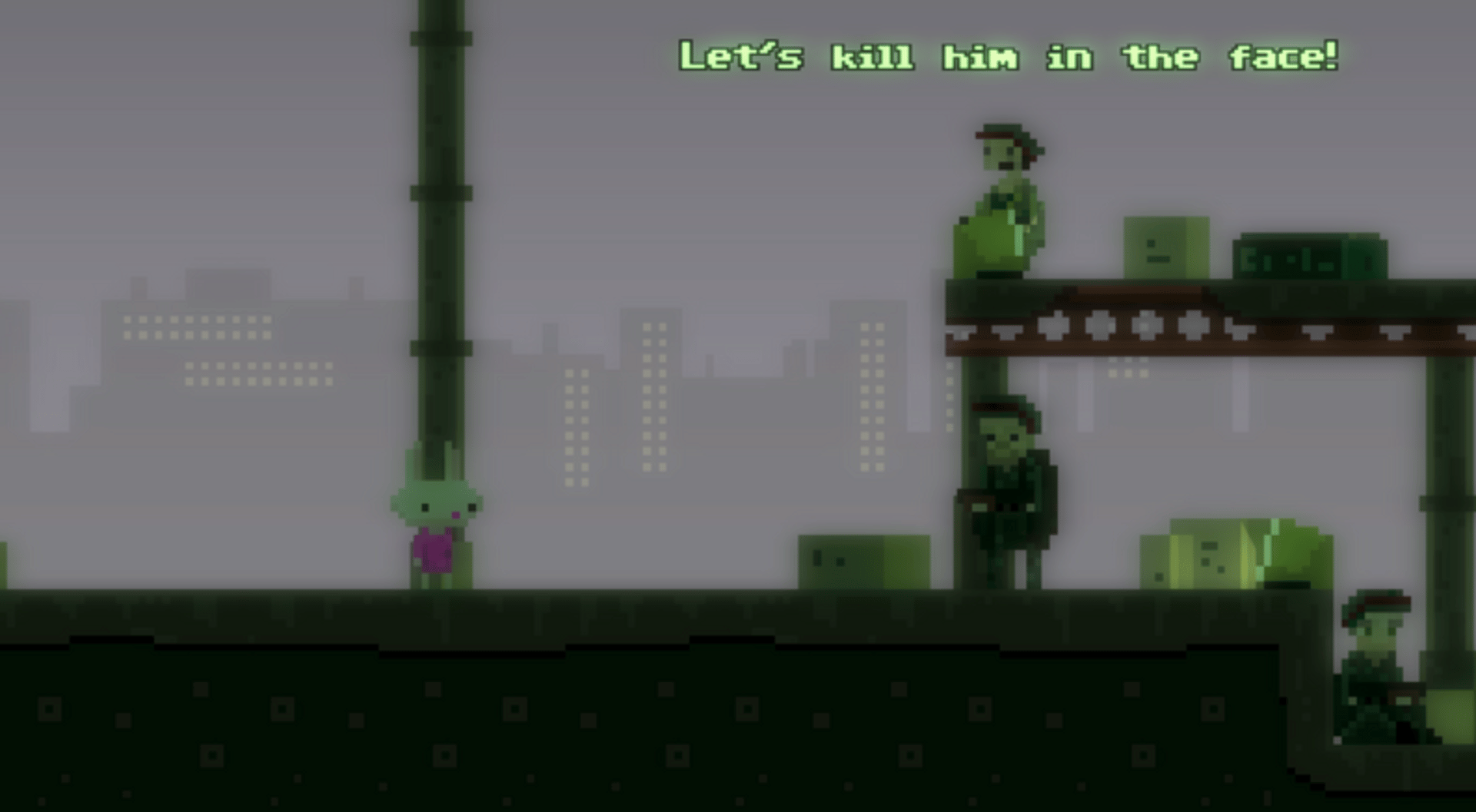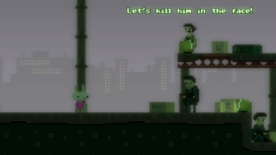 In the game you play as Meat McBeef and Bunny Amour. The Heat Of Battle combines the themes of a platform game with a point and click adventure. During the casting for their next game the protagonists get mixed up. This results in the action guy ending up in the dating sim, while the cute rabbit stars in the action shooter game.