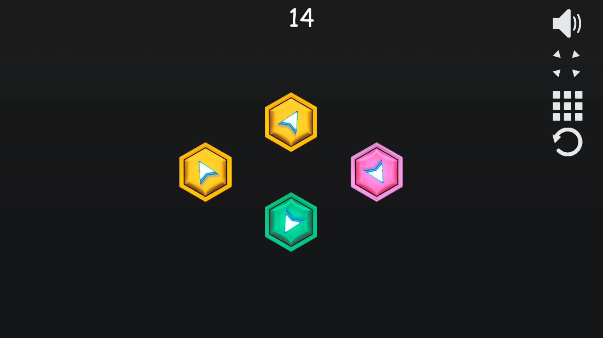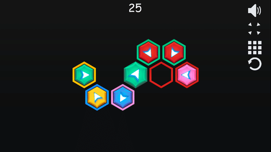 Hexagon puzzle has the challenge of moving colored hexagons to the spaces of the same color by clicking on them.