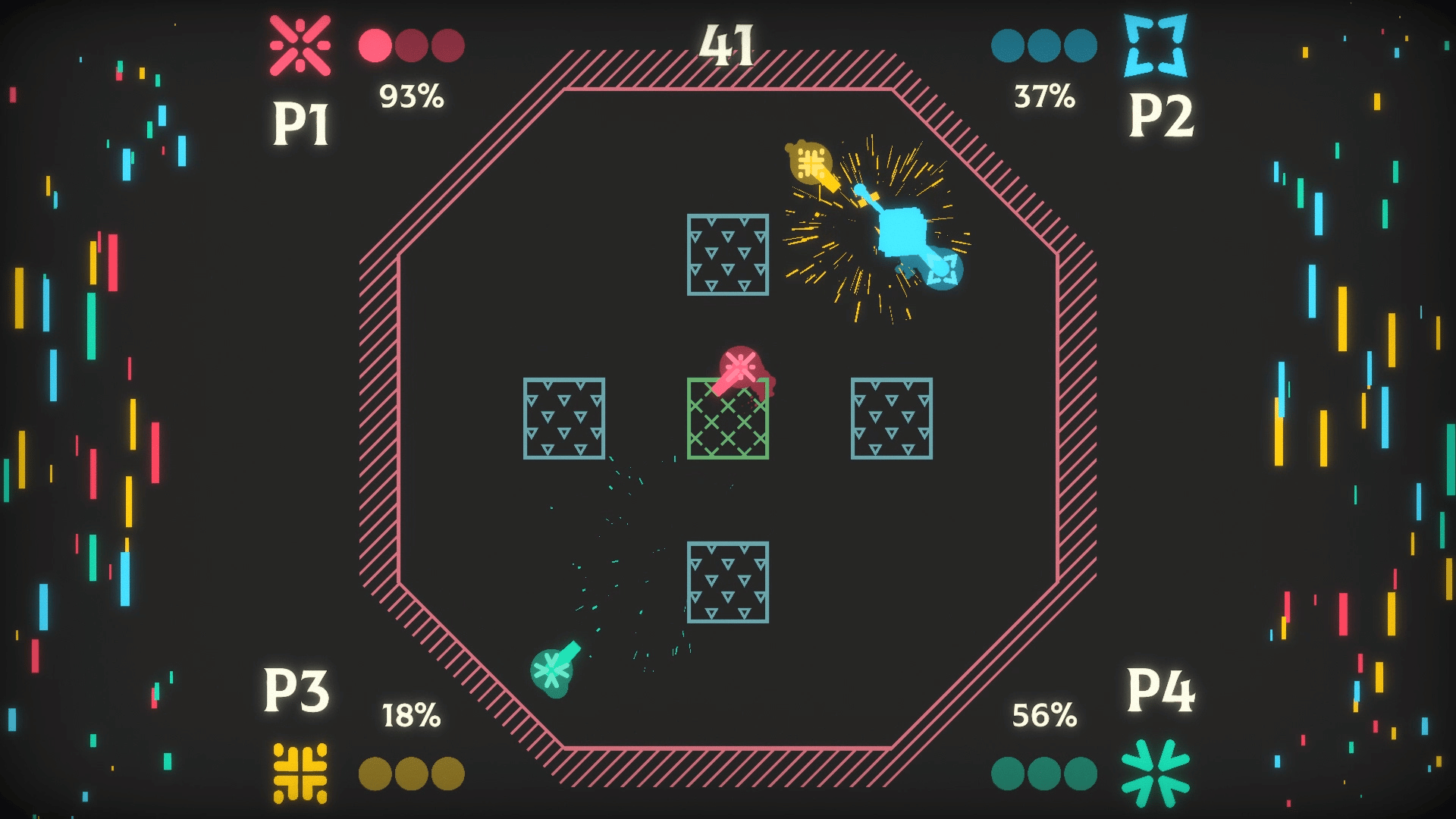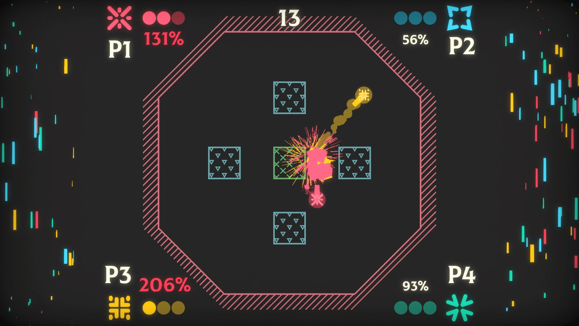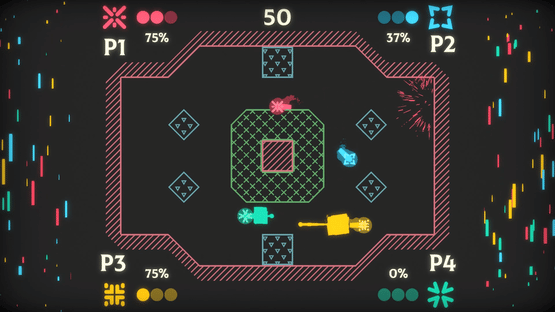 Color Cannons+ is a fast paced, shooting, shoving, and blasting local multiplayer game for up to 4 players. Play across 10 maps, each with a unique and original soundtrack.