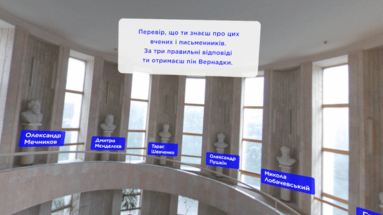 VR-tour "Kyiv from dusk till dawn" includes:6 locations More than 20 minutes of video content Interactive games in every location Full immersive application Prizes