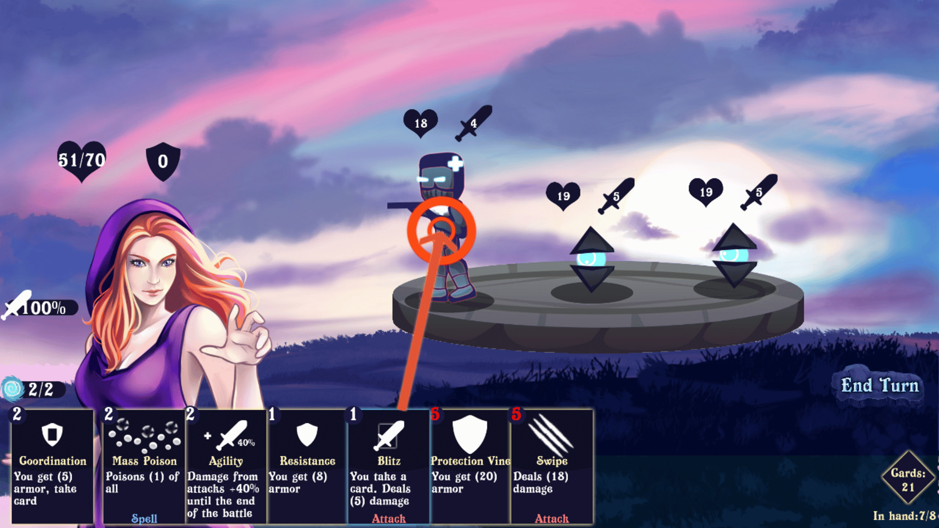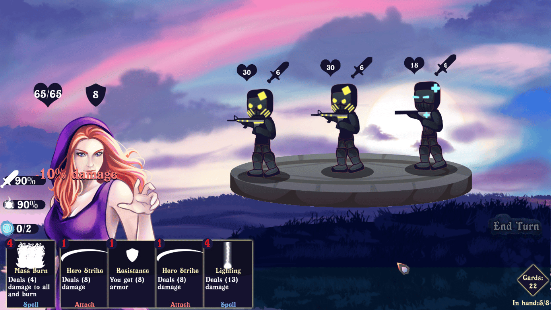 Cardiganical is a CCG game with some roguelike elements. Defeat the enemies, collect your own deck and win in randomly generated raids to relaxing music.