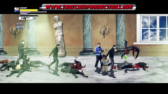 Side scrolling beat em up game featuring digitized characters and a blood soaked action adventure