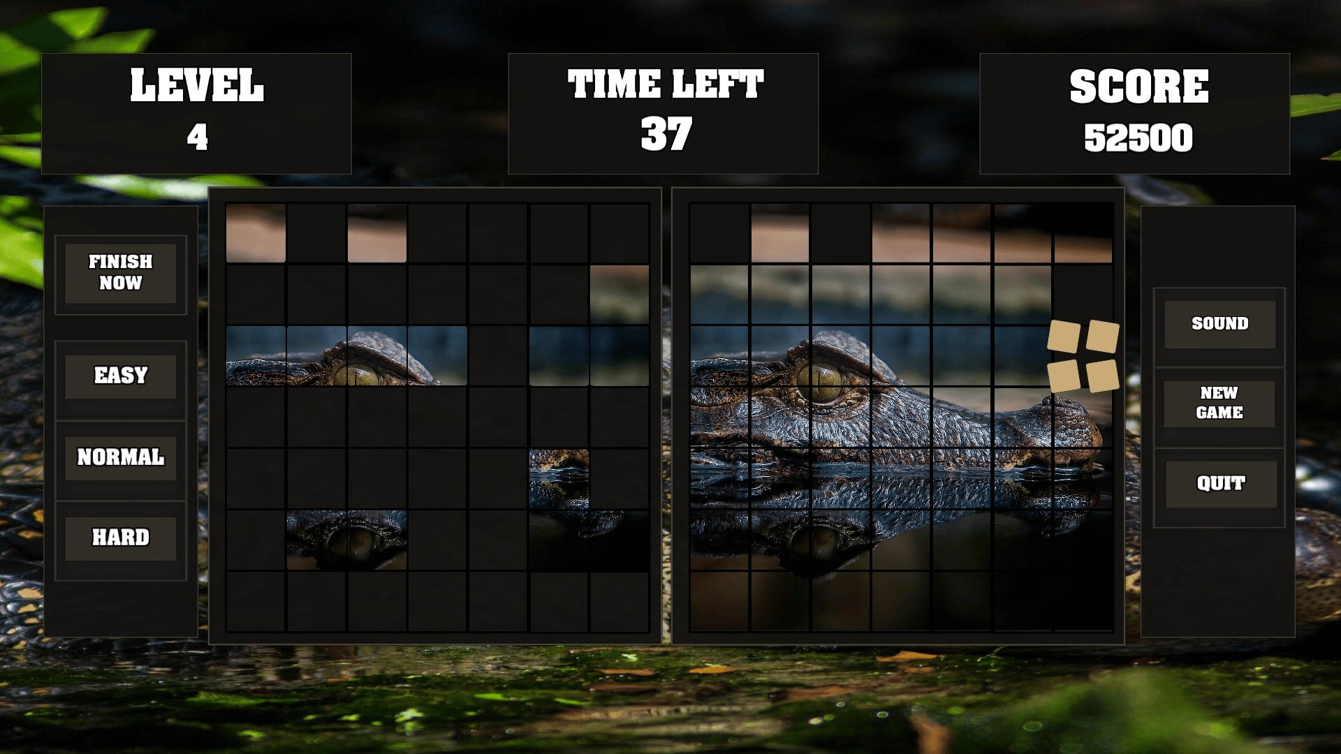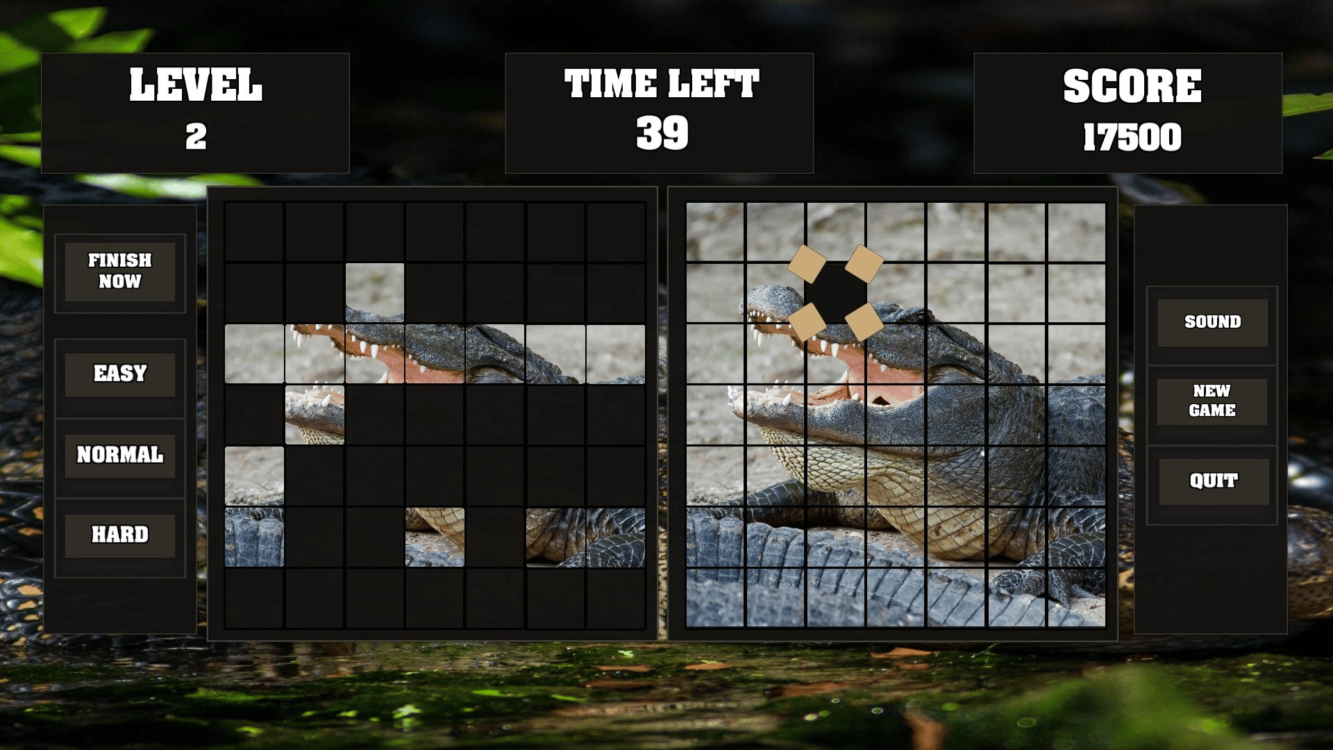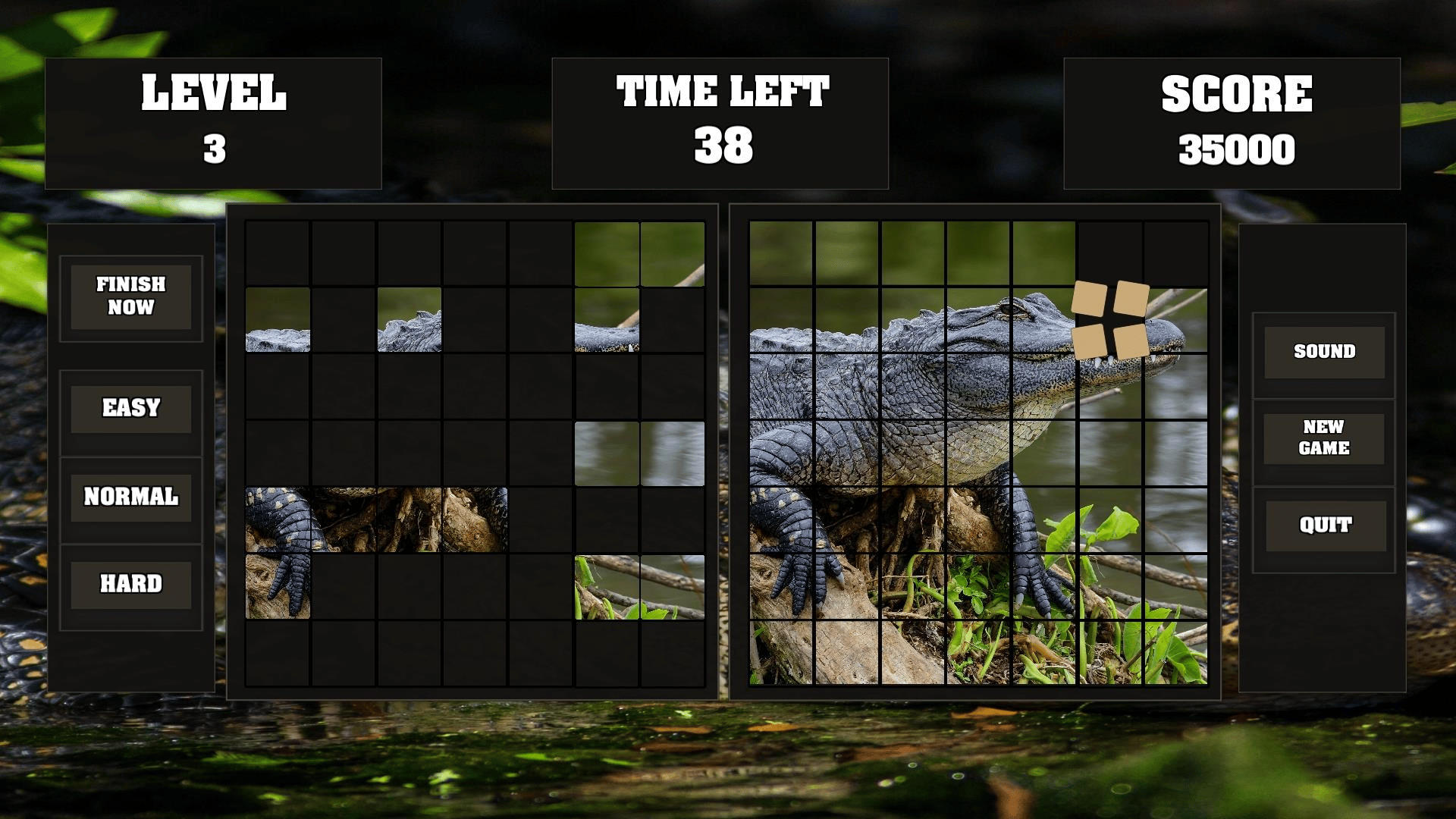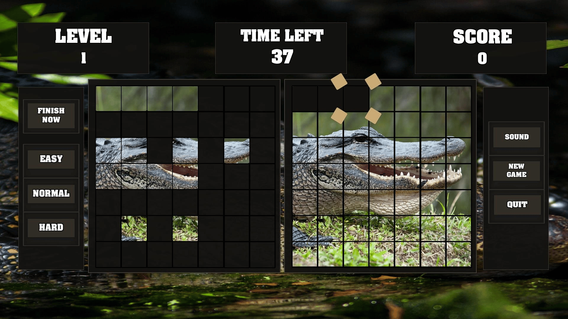Hello puzzle solver! Fitzzle Vicious Alligators is a unique expansion of the classic jigsaw puzzle style games. Instead of frustratingly trying to match oddly shaped pieces Fitzzle Vicious Alligators uses squares but maintains the fun puzzle completion goals you would experience with a jigsaw puzzle