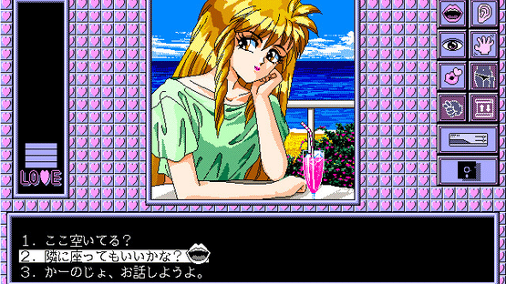 The third in the Can Can Bunny series, Can Can Bunny Spirits deals with a nameless hero (the player has to give him a name) who is - in accordance with Can Can Bunny tradition - a lonely guy who can't get a girlfriend. One night he sits at home and stares at the moon. Suddenly, the magic fairy Ariko appears in front of him and gives him... no, this time not the Magic Book, but a Magic Crescent! With the help of this crescent, the hero can turn into totally different young men - which will naturally increase his chances in impressing girls and ultimately having sex with them. Can Can Bunny Spirits is much less of an adventure and more of a strategy game than its predecessors. Success depends even more on the preparations before the actual decisive stage. There is also extensive customization in this game. In the beginning, the hero chooses what he wants to be like, which includes age, height, blood type, and other parameters. Then Ariko introduces several girls to him, of which he has to choose one. Afterwards, it's a matter of asking the right questions and giving the right answers, combining knowledge of the girl's preferences and of the character's statistics. Each girl has a "love meter that can be raised or lowered depending on the player's strategies, and once it is full, the hero can have his way with the girl.