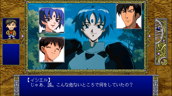 Shinpi no Sekai: El-Hazard is based off of an anime with the same title. The game plays like an enhanced visual novel which is fully voice-acted and displays protagonist and other characters on the screen during dialogues. Event scenes and animations are quite common, and character poses depicting their current disposition is displayed in portrait images which are also animated. Unlike typical visual novels where the player is limited to dialogue and choices, players can explore various locations on the map and try to perform actions outside the dialogue window, such as initiating a talk to other characters, or look around the area or go someplace else.
