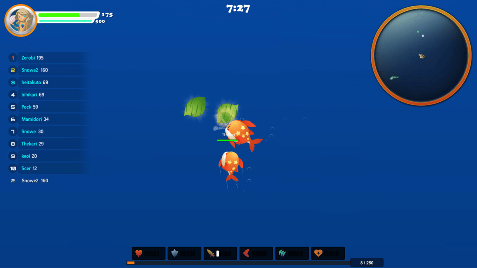 Fish duel is an IO game which involves fish battling beneath the sea, where you can revel in the delight of biting and tearing up your opponents, and evolve your fish to dominate the ocean. Fancy a simple yet exciting casual game? This one is sure to get you and your friends hooked.