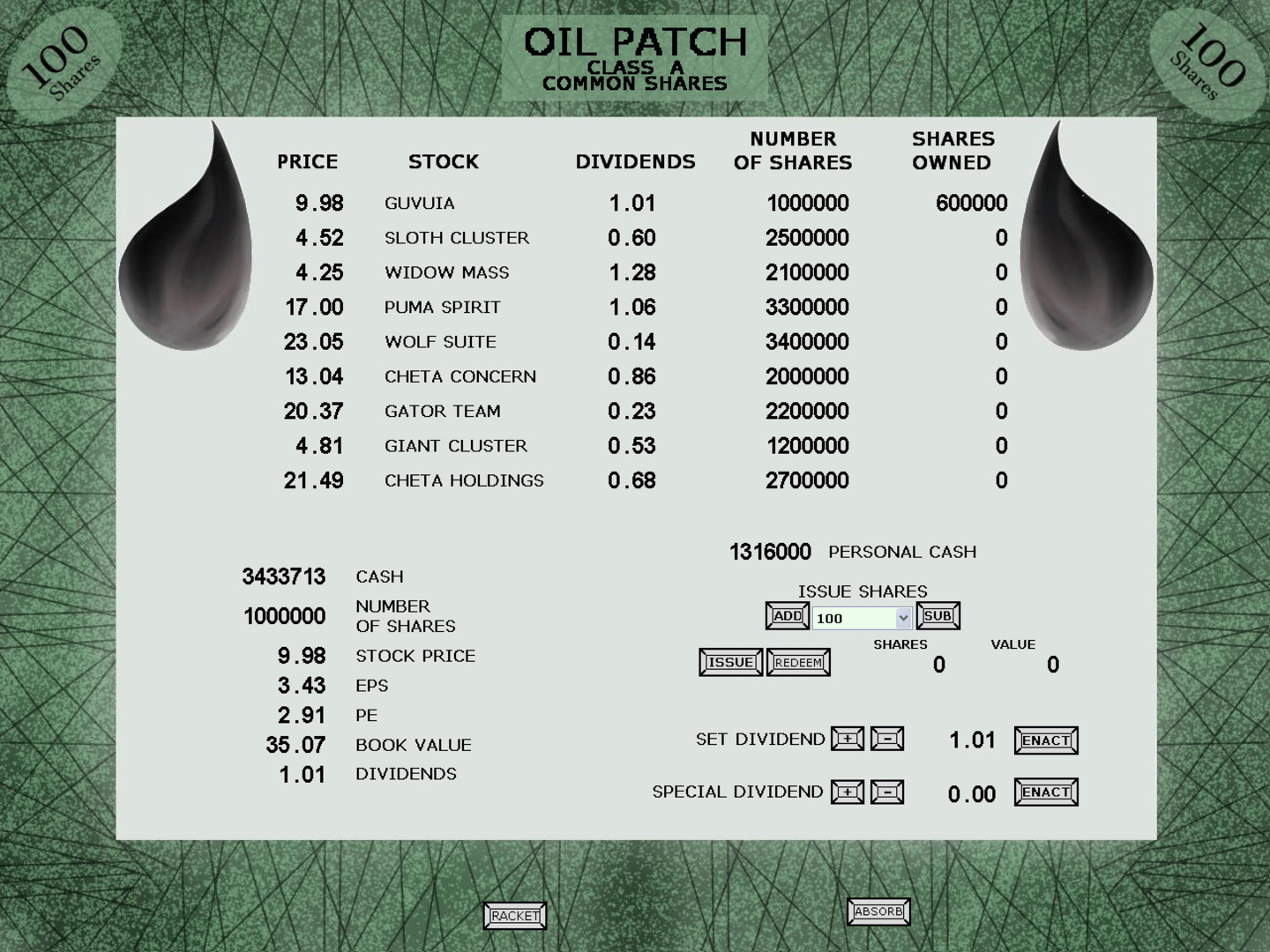 A surprisingly complex and fun business strategy sim. It is more difficult than you might think. Wildcatting Oil Speculation with a Stock Market twist. Endless business sim entertainment for all ages.