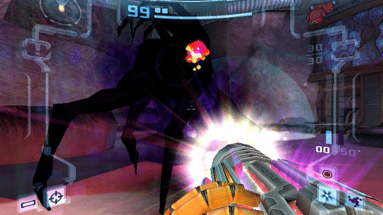 An exploration-driven 3D metroidvania/first-person shooter hybrid and sequel to Metroid Prime (2002) in which Samus lands on Aether, an intricate planet torn into light and dark versions of itself, to help its remaining inhabitants defend against the invaders from its dark incarnation by traversing both the light and dark worlds, acquiring new power-ups and braving oppressive environments.