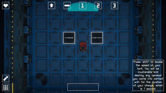 Nanoswarm is a game about surviving an endless assault from an army of nanobots with the ability to form terrifying and unstoppable battlebots. You're not alone though. Tank command is back at base finding you new powerups all the time, helping you to overcome the odds and have a chance against your terrible foe.