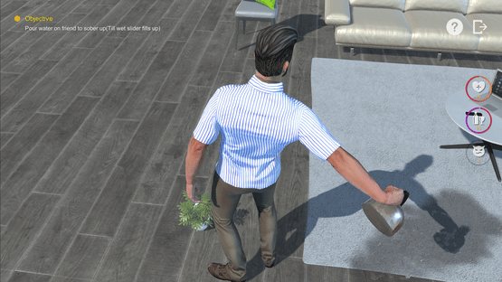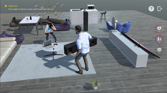 What will you play if you have a very drunk friend? A warm hearted angel? Or an evil bad guy? You may find answer in this fun sim game. Try exploring in the room and figure out how to sober up your friend!
