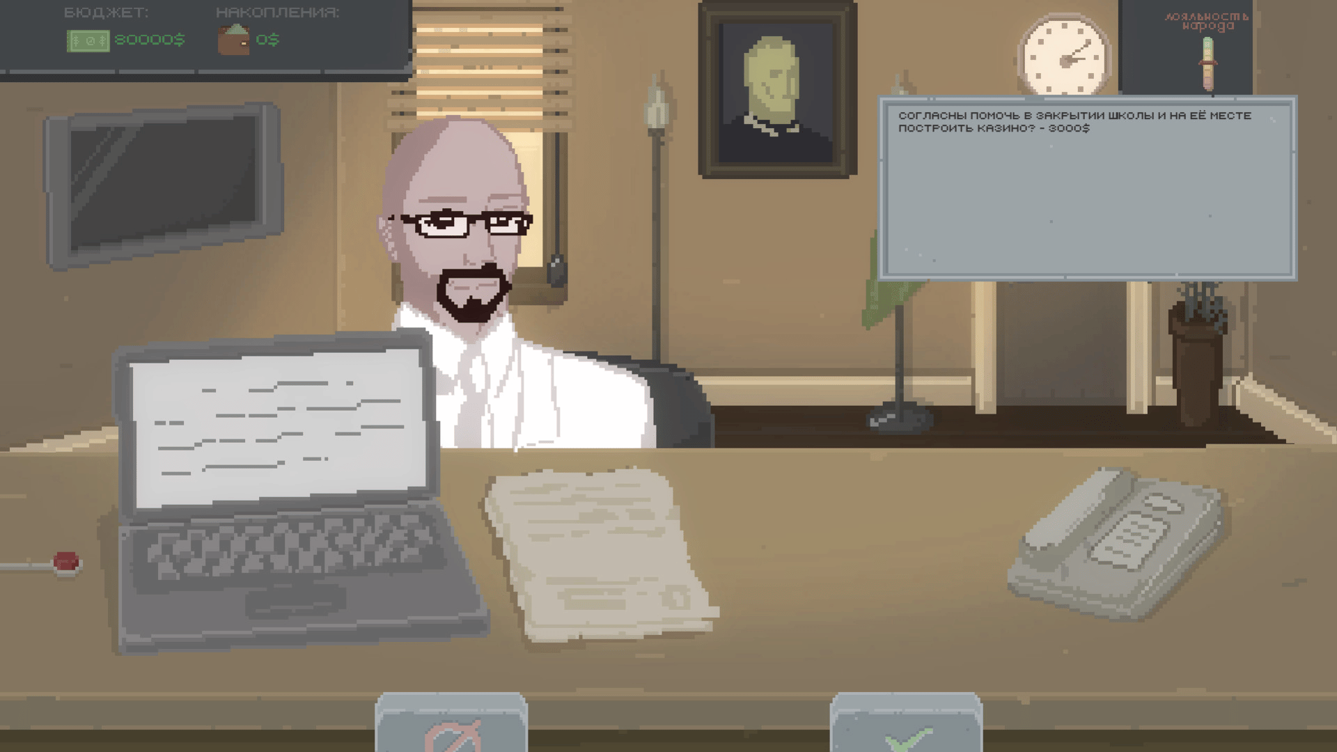 Do you think that officials are greedy and corrupt fools? Congratulations, now you are one of them. You are an official whose daughter was suddenly and deadly sick, you need money for treatment. Will you save your daughter and become a hero for her, or will you be a hero for your people?