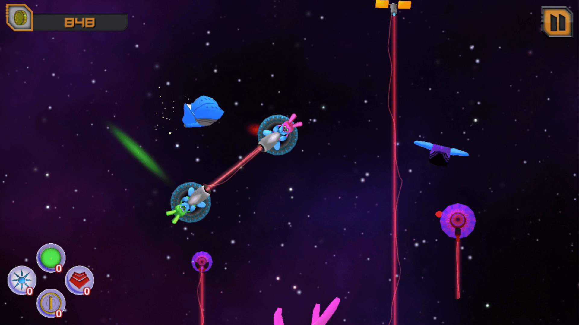 Two bunnies gear up, a laser blasts between them, they shoot off into space! Navigate through 50 action-packed levels with hours of gameplay that is perfect to binge alone, with a friend, or play 5 minutes at a time. How deep into space can you go? How many bosses will you defeat? Good luck space buns!