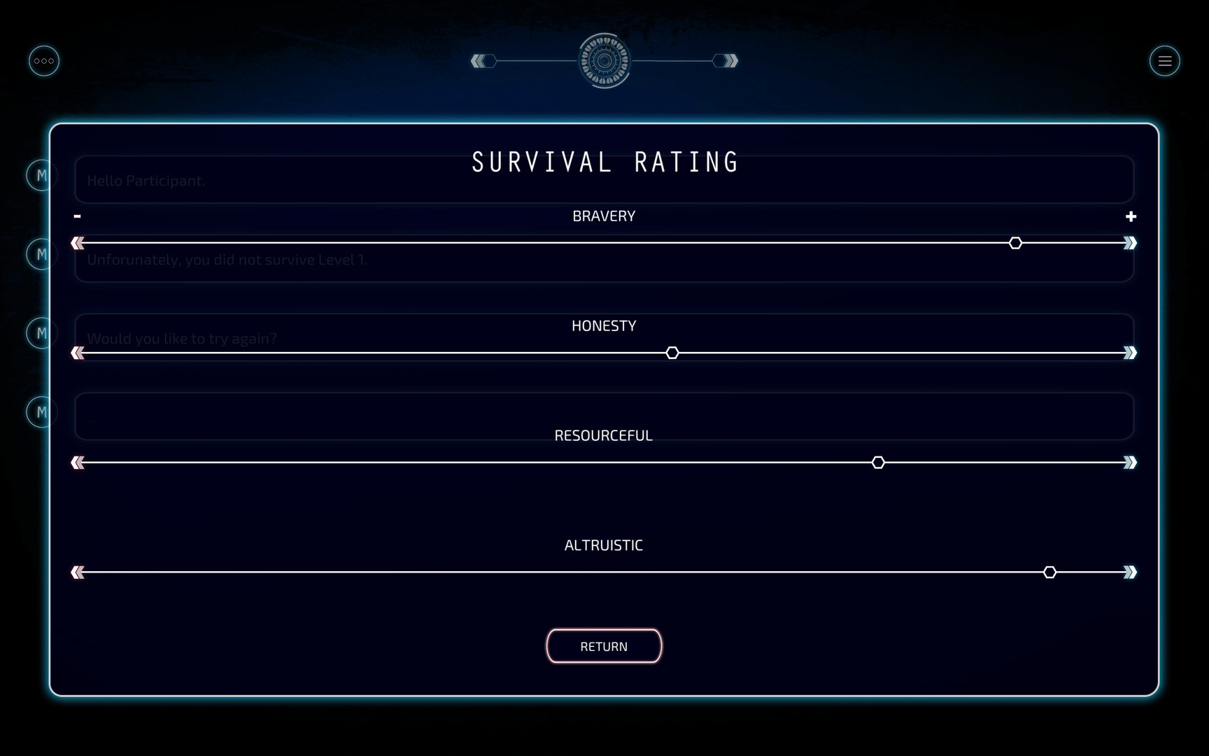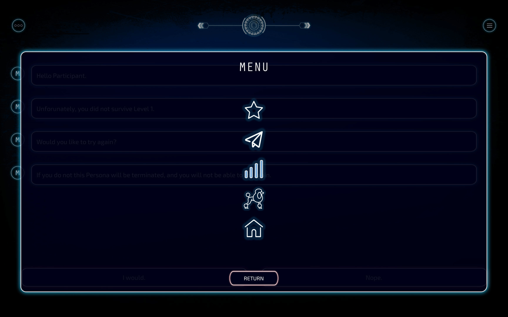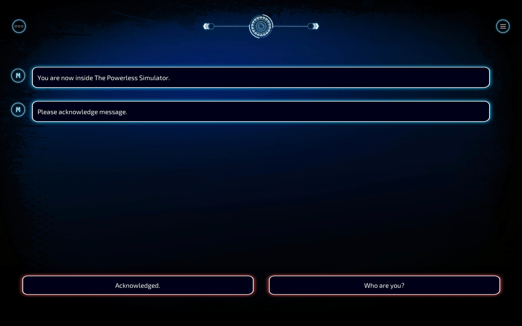 How Long Can You Survive?Powerless is an interactive fiction experience set in present-day London which explores the devastating effect of a global power cut. Guided by the brutally honest and frank AI "MAUDE" (Mobile Assessment Unit of Disastrous Events) you will be assigned unique personas based on answers to psychological profiling questions. Once briefed, you will enter into the simulation and experience different stages of the Powerless catastrophe. Explore as many personas as you can and try to keep them alive long enough to discover how deep our reliance on technology has become. As you move through the simulator, MAUDE will judge you on your honesty, selfishness, bravery and resourcefulness.