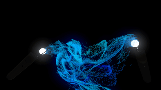 In a black void, several hundred thousand tiny cubes dance and flow around gravitational fields emitted from the Vive controllers. Endless hypnotic and beautiful behaviours emerge from the simplest of physical laws.