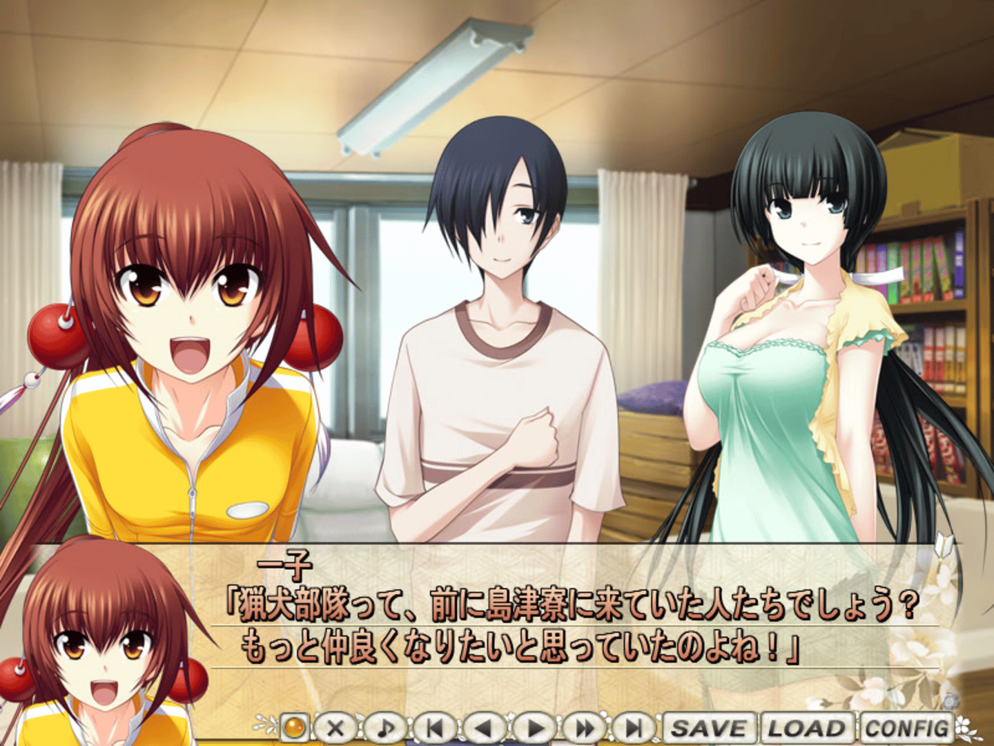 Three mini-scenarios about Mogami Aki, Bushou and the Hound Squad (mainly Thelma). When all three routes are cleared a new route appears.