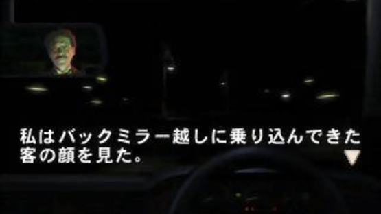 The player takes on the role of a taxi driver in Osore Cho (literally Fear Town), listening to the various horror stories of their clients. You have the option to pick up or ignore clients, and the story changes depending on these decisions. Occasionally you will be attacked by paranormal phenomena, so it is still possible to get a game over. There are 36 stories in total, including 4 hidden stories. Each of the stories are between ten and twenty minutes long. Ten of the stories are narrated by Mr Inagawa, while fourteen are narrated by other voice actors. The remaining eight stories have no narration and are only text based. There are certainly some famous ghost stories included in this collection, in particular 犬鳴峠 - Howling Dog Pass.