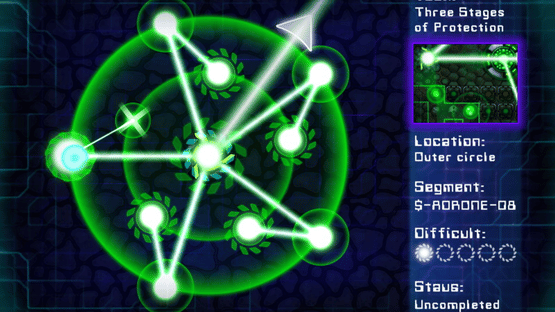 Connect the points with neon rays to liberate virtual city of Santermonia from the Main Virtual Controller's tyranny.