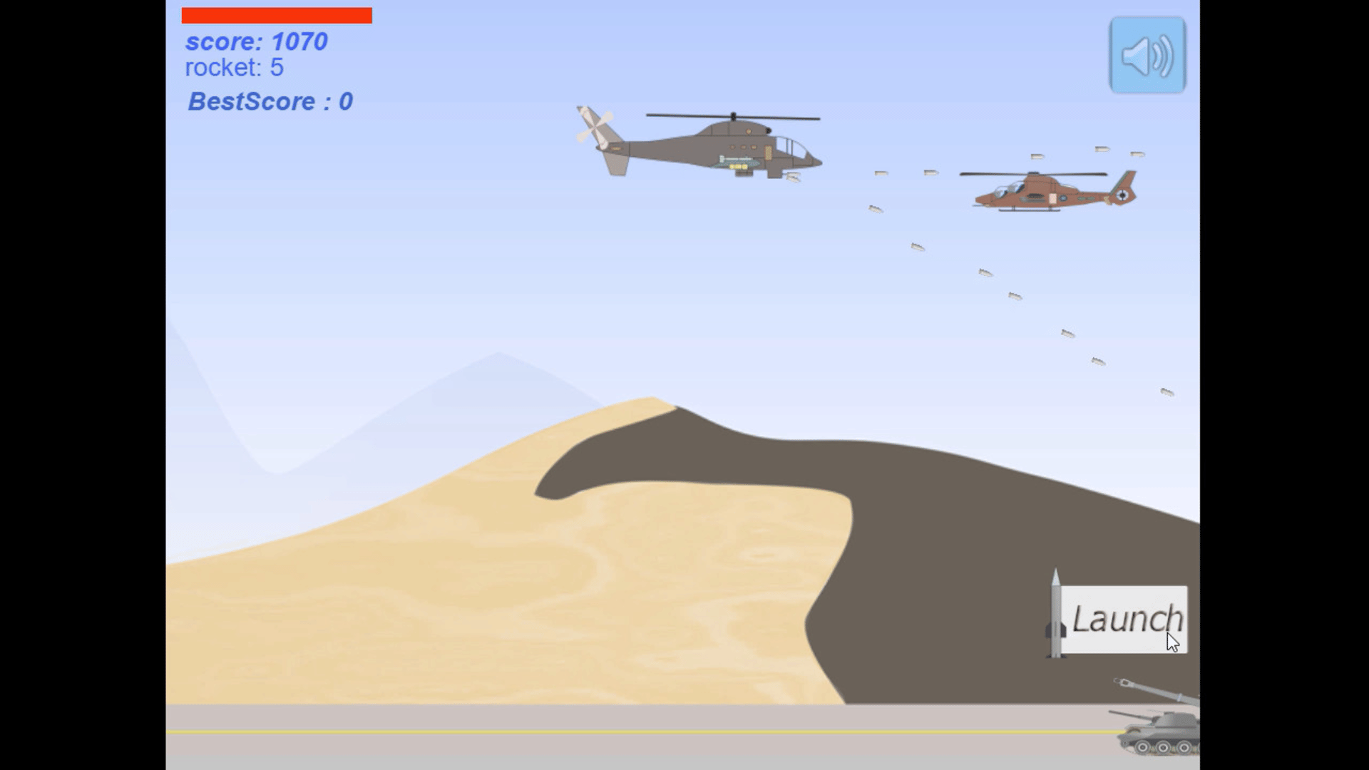 You are a military helicopter pilot who must protect the border from enemy invaders. On your way there will be a lot of military equipment that you want to destroy. Defeat everyone to become a hero. Pick up armor to protect the helicopter.