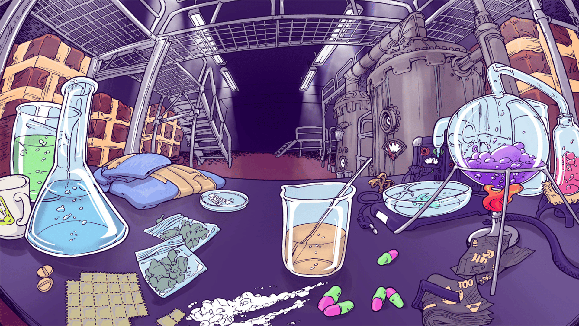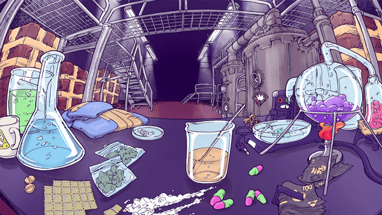 In "The Pusher" the player has to mix different chemicals and raw materials to... let's say interesting new substances and sell them to the consumers on the street. Do customers love your product because of the beautiful things they see when they take it or do they need it, even if it has a bad effect on them?