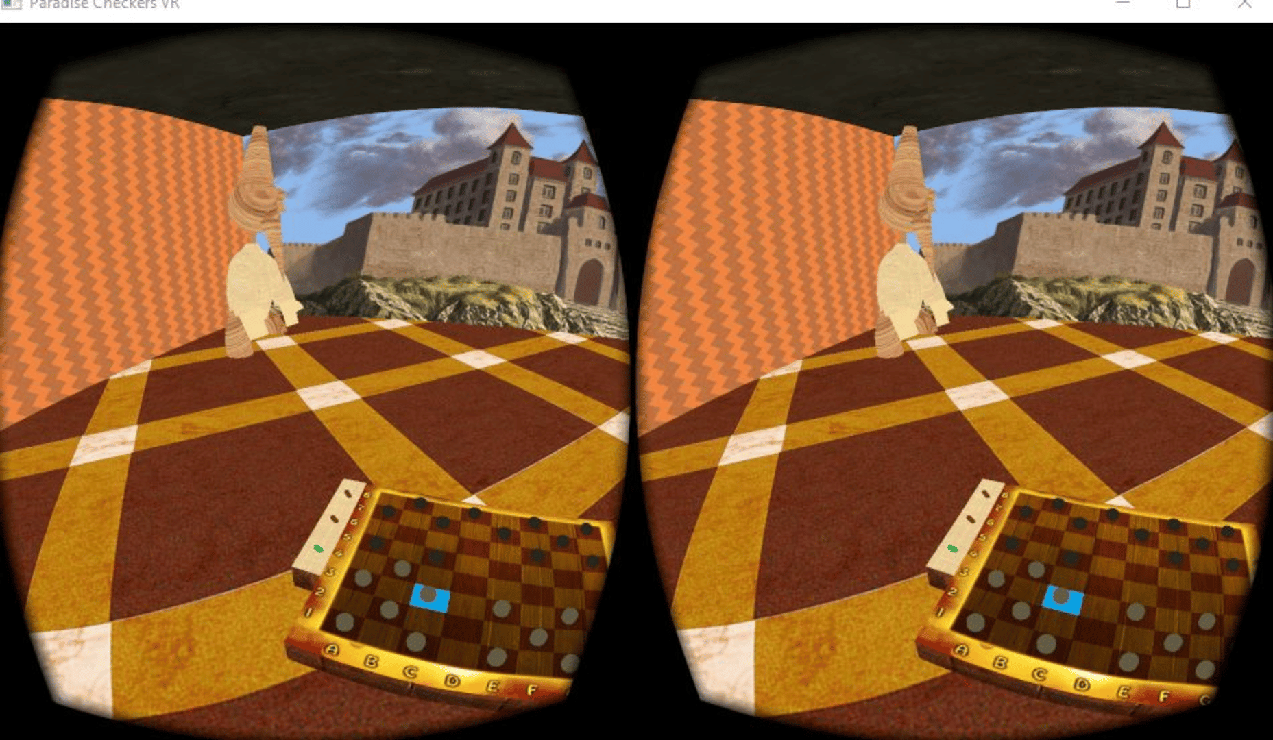 "Paradise Checkres" is a board game put in VR enviroment, The game consist of two dificulty levels - "min" to beginners and "max" for more advanced players. You can also choose colour of your pawns as black or white Your pawns are at the bottom of the board.