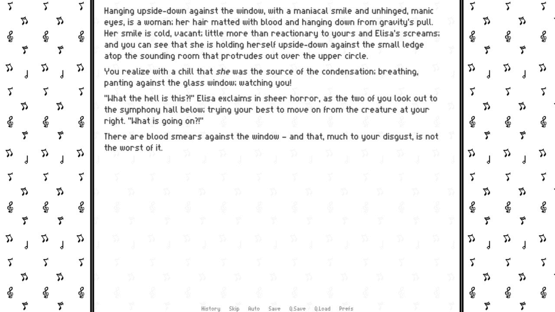 The Ghost of You is a text-based, yuri horror game in which a night at the symphony ends in a massacre. Libretto and her friends must work together to find out the truth; but between romantic conflicts, personal demons, and a song so haunting it warps the mind, will they survive the Symphony Hall?