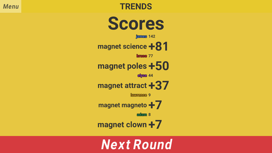 For 2-5 players. Trends is the one and only game powered by the Internet. Players pit search terms against each-other to see which is more highly ranked by search traffic.
