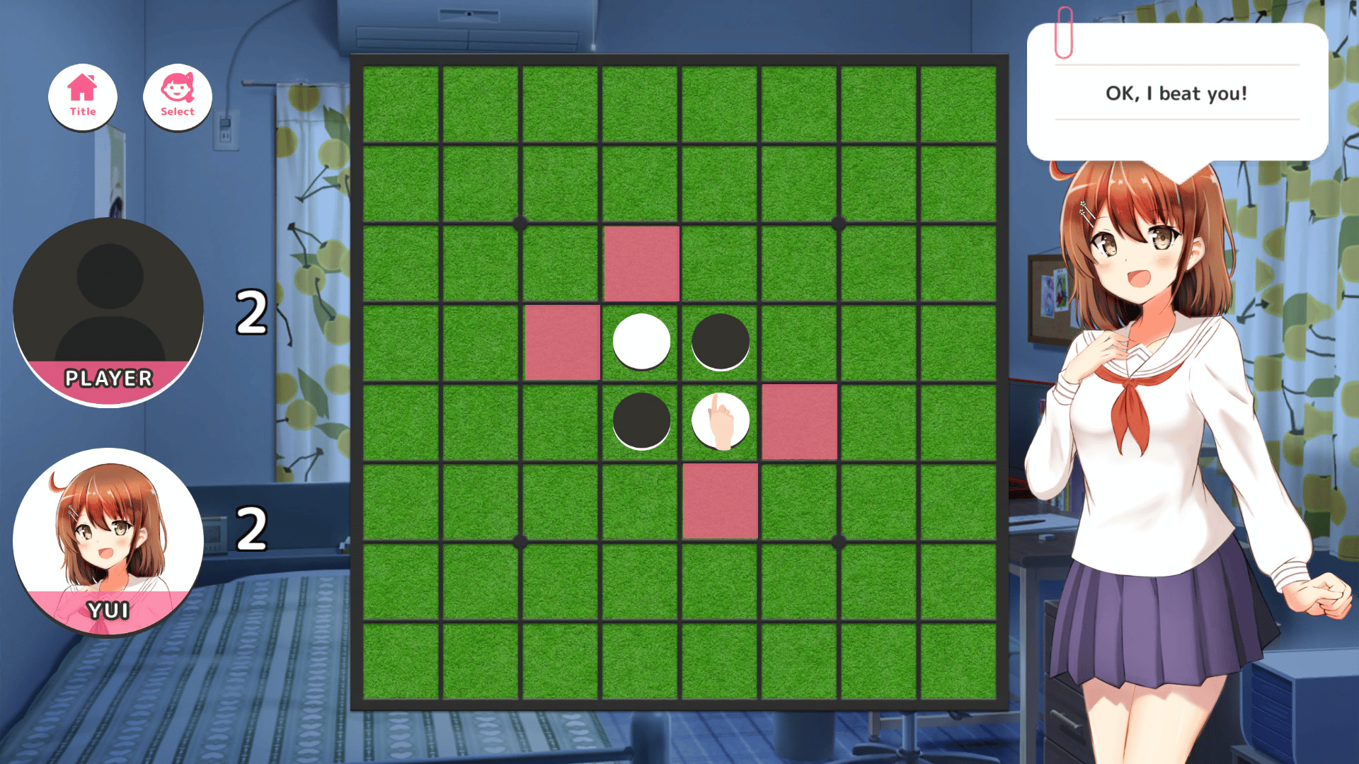Play against total 8 beautiful women in reversi! All opponents are really cute. You will choose your favorite opponent from 8 opponents, play against it in reversi.