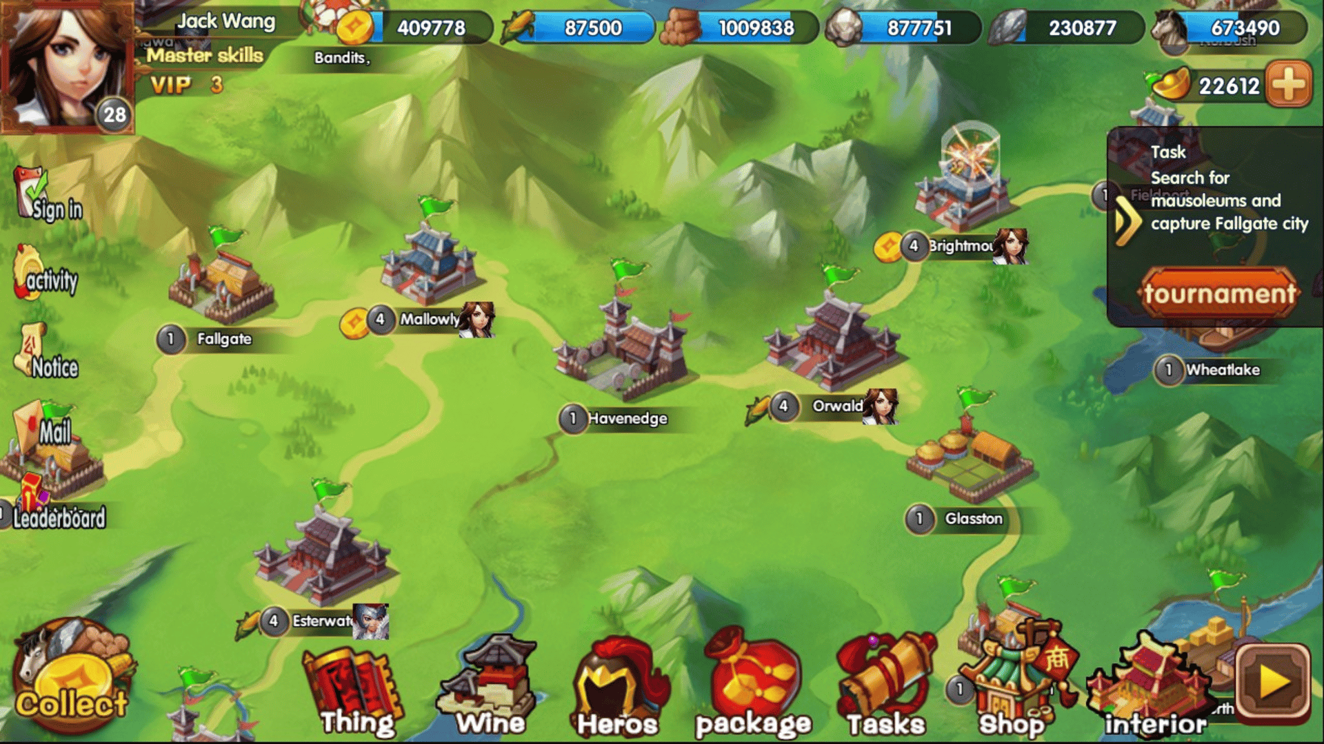 This is a strategy type game, players can capture the city, the final one continent, in this process, players can collect hundreds of heroes, different heroes have different skills and abilities, you can also train the hero, build a strong army.