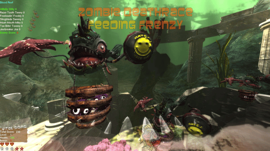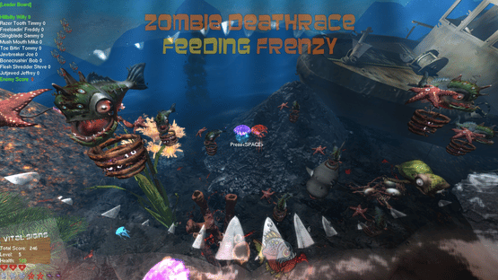 Zombie Deathrace Feeding Frenzy is the first competitive VR aquarium style game, available on PC and Android. Play against your friends on dedicated servers, or play against the single player computer generated AI and progress through the game levels and get the high score.