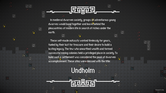 A dwarfish colony sim set in a fantasy world. Inspired by Rimworld and Banished. Dig deep to uncover riches and challenges, recruit dwarves to produce goods, and trade with other settlements (or raid them) to help your colony succeed.