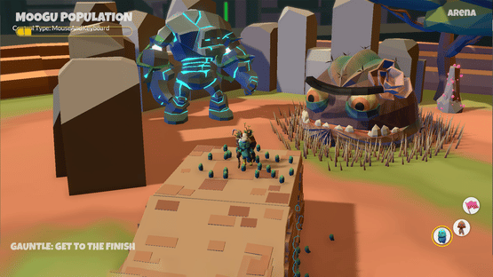 Terrorarium is an action puzzler game about wanton destruction & adorable gore across a galaxy of community-designed murder gardens. Like every great villain, you have been foiled for the last time. And this time you mean it. Those fools at the Intergalactic Horrorcultural Society have given the blue ribbon -- your blue ribbon -- to some ill-deserving pretender to the throne for too many star cycles now, and you are determined it will not happen again. This time, you're pulling out all the stops. There is no monster too deadly for you to capture, no combination of creatures too volatile for you to control. You don't care how many invasive species you have to introduce or ecosystems you have to destroy, your ambition will not be contained. You will slay the competition at any cost. Terrorarium is an 3D puzzle platformer where you play as the Gardener, a feisty granny with a chip on her shoulder, and her army of adorable, expendable Moogu. The Moogu will die frequently, breed out of control, and are often as insufferable as they are useful. In Maker Mode, you choose how the chaos unfolds. Design and publish your own levels with vicious creatures, treacherous hazards, plant monsters, lovely foliage, and destructible terrain. With these moveable, scalable, customizable assets, you can create a beautiful garden, a deadly maze or a murderous gauntlet. Hundreds of community levels have already been designed for you and you can share the levels you build with your friends and frenemies, so they too may see the horrors you have wrought.