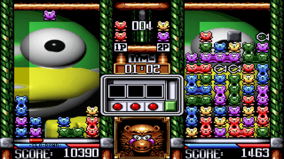 Minskies Furballs is not a port, but a spiritual clone of Puyo Puyo. In a tournament against a cast of crazy characters, you must guide and rotating falling pairs of cats of different colours to make up colour combinations.