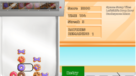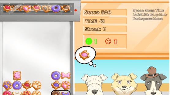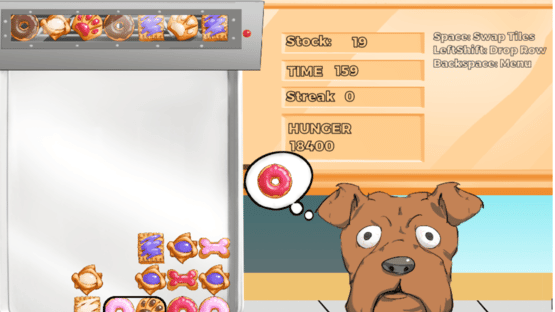 Dogtown Barkery is a matching tile puzzle game in which the player serves donuts to the busy patrons of Dogtown. Make sets of three by either shape or by color, and be sure to include the customer's desired order in the set. Missions are available in batches, and come in a variety of formats: Serve a specified number of customers in standard time trial stages. Survive the morning rush and keep a positive ratio of happy customers in survival stages.Solve the puzzle of serving all leftover donuts in puzzle stages. Satisfy the hungriest of customers with your remaining supply of donuts in boss stages.