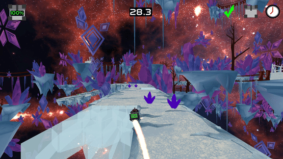 Fast Travel is a time trial racing game where you must use a hover bike to navigate strange and dangerous environments to deliver loot boxes. While piloting the hover bike, you must maintain your balance to make sure you lose as little of your cargo as possible and avoid crashing.