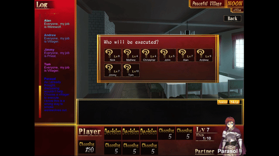 Wolf or Boy is a simulation game that you can experience a physiological battle between humans and werewolves. Hearing a rumor that horrible murders are repeated in a village in the middle of nowhere, you visit the site. Apparently, how they got killed are not human's doing. There are werewolves among the villagers...