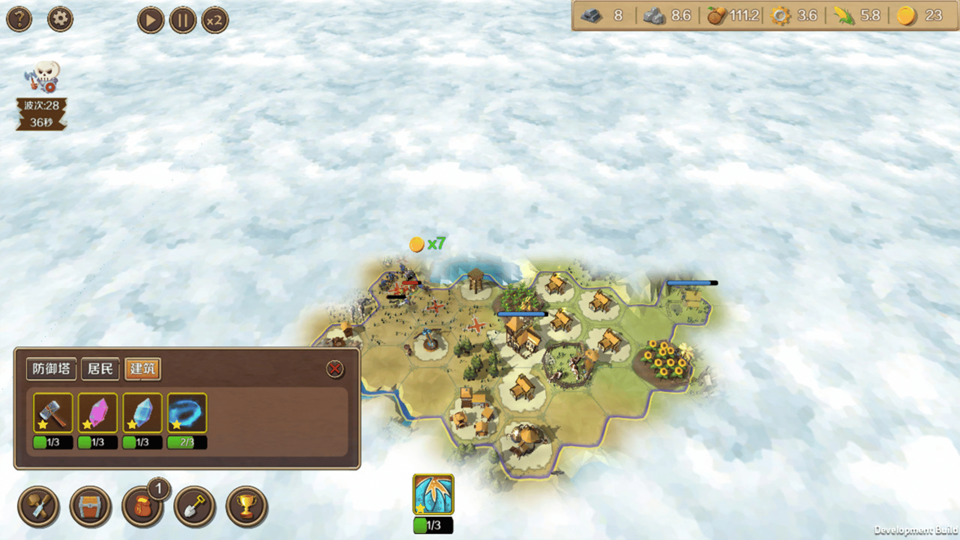 Defending Territory a tower defense strategy game. Collect resources in your territory, develop your economy, expand your population, build defensive and economic buildings to defend your enemy's attack.
