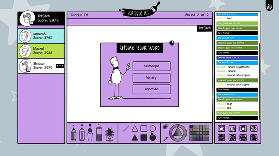 Scribble it! brings classic party drawing games back to life. Featuring 3 different multiplayer game modes it offers a diverse gaming experience. Thousands of words in both English and German provide for an entertaining gameplay that won't get boring.
